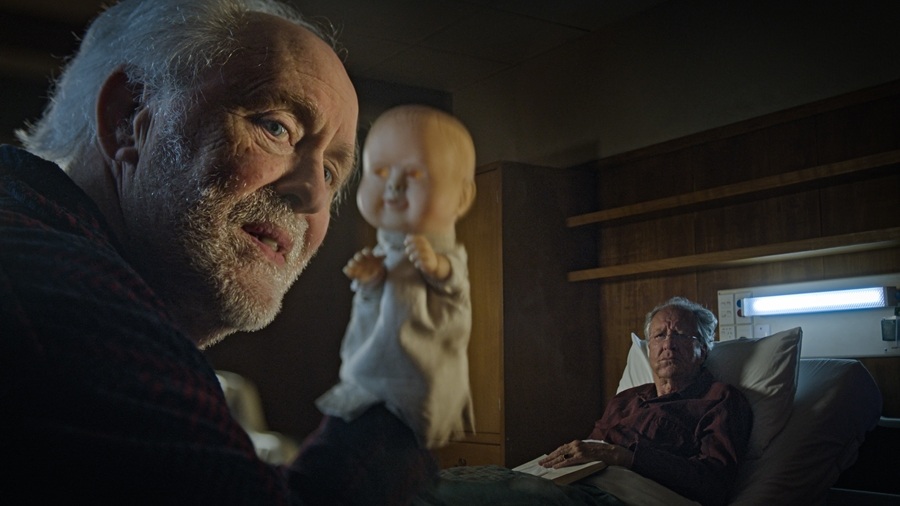 Sıradaki filmimiz Yeni Zelanda’dan. İlk filmi Coming Home in the Dark (2021) ile dikkatimizi fazlasıyla çeken James Ashcroft’ın yeni filmine de bayıldım. Geoffrey Rush ve John Lithgow’un karşılıklı döktürdükleri filmde, geçirdiği felç sonrası bir huzurevine yerleşen emekli yargıç (Rush) ile elindeki tüyler ürpertici kuklasıyla bütün huzurevi sakinlerini korkutarak baskı altına alıp taciz eden psikopat bir yaşlının (Lithgow) mücadelesini izliyoruz. Ana korku unsuru elbette ki yaşlı psikopat ama bana daha da korkunç gelen, huzurevi yönetiminin olaylara kayıtsızlığı ve huzurevi sakinlerinin psikopatın her türlü eziyetini direniş göstermeden kabullenmesi oldu. Yani bir psikopat, elinde doğru düzgün hiçbir güç olmamasına rağmen, koca huzurevinin kontrolünü eline geçirmiş, dilediği gibi at koşturuyor.