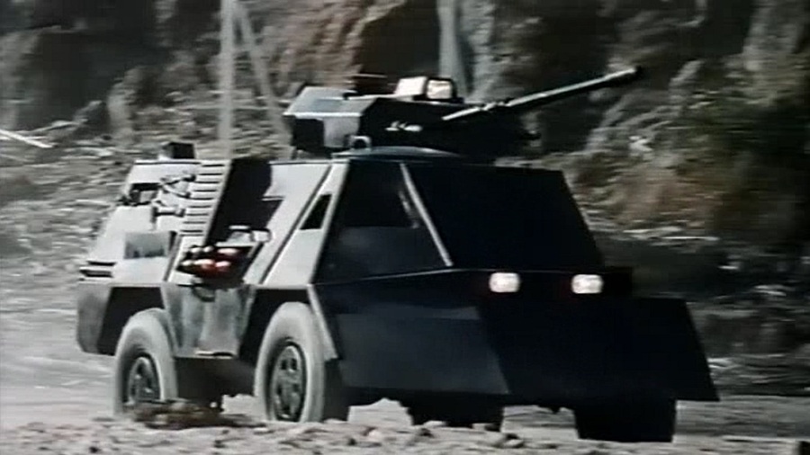 Araç şekil olarak Cadillac Gage Commando Scout panzerlerini andırıyor ama çok daha küçük boyutlusu, muhtemelen eski bir M151 askeri jip üzerine inşa edilmiş. Görünüşü çok fantastik olmayabilir ama filmin kendisi başka hikaye.
