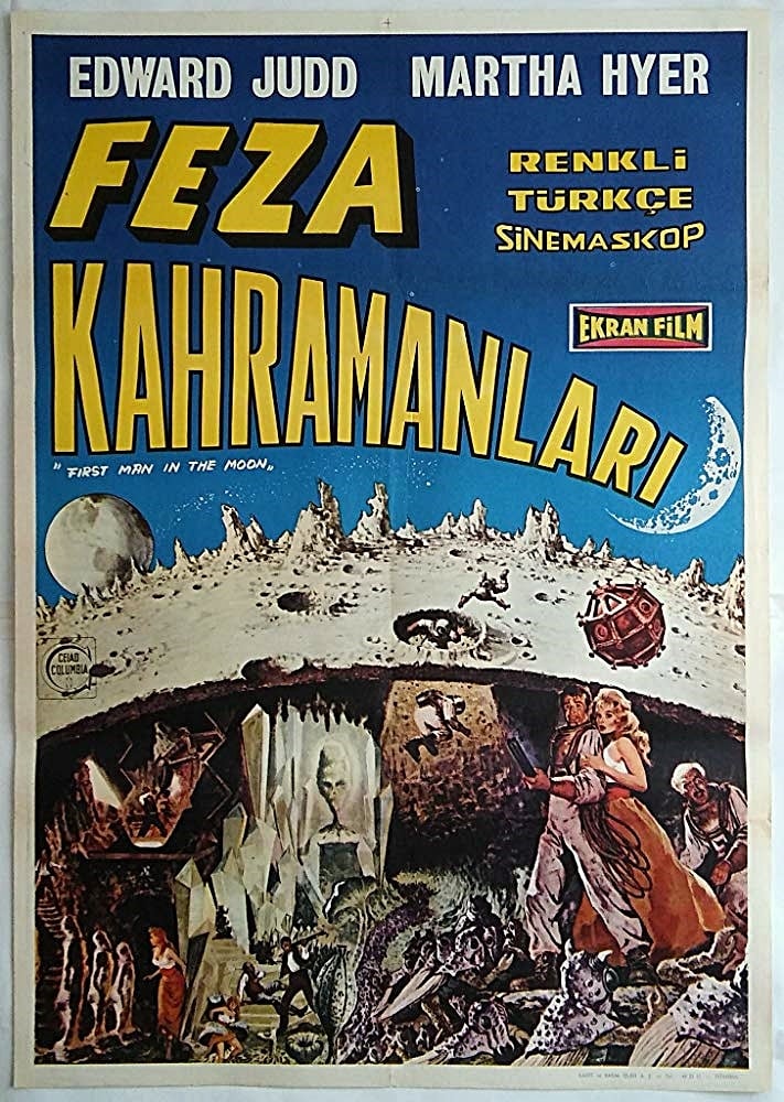 1964 yılı mahsulü First Men in the Moon, Nathan Juran tarafından yönetilmiş olan İngiltere yapımı bir film. H.G. Wells’in 1901 tarihli The First Men On The Moon adlı romanından sinemaya uyarlanmış. Bazı kaynaklarda eserin ilk uzaylı distopya romanı olduğundan bahsedilir. Roman ilk olarak 1919 yılında Bruce Gordon ve J.L.V. Leigh yönetiminde sinemaya uyarlanmış. 1964 tarihli filmimiz için romanın ikinci uyarlaması diyebiliriz.