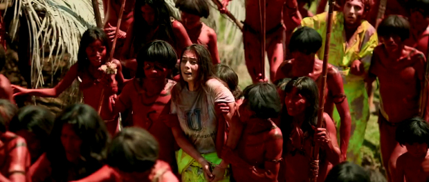 Zorlu olmayan bir yolculuktan sonra şantiye sahasına varırlar ve kendilerini ağaçlara zincirleyerek görüntüleri yayınlamaya başlarlar. Olaya müdahale eden paralı askerlere karşı Justine bilinçli olarak yem olarak kullanılır. Eylemcilerin için de bir BM bürokratının kızının da bulunduğunu duyan paralı askerler sert davranmaktan kaçınır. Böylece Justine’i yem olarak kullanan eylemci ekip, kesimi engelleyerek büyük sükse yapar. Ama gerçekler başkadır. Eylemler kesimi yalnızca bir kaç gün geciktirmiştir ve bir başka kesim şirketi işe devam etmek üzere bir kaç gün içinde şantiyede olacaktır. Yani aslında Alejandro kendi liderliğini perçinlemek için herkesin hayatını tehlikeye atmıştır. Geriye dönerken eylemcileri taşıyan uçak muhtemelen bir sabotaj sonucu düşer. Kazadan kurtulabilenlerin bir kısımı yerliler tarafından okla öldürülürken diğerleri köye götürülür. Köye giriş sahnesi ilginçtir. Bütün yerliler esirlere dokunmaya çalışmaktadır. Bu sahne bana kesilecek hayvanın sırtını sıvazlayan kasapları hatırlattı. Bir kafese kapatılan esirlerden Jonah (Aaron Burns) herkesin gözü gönüne vahşice öldürülerek pişirilip yenir.